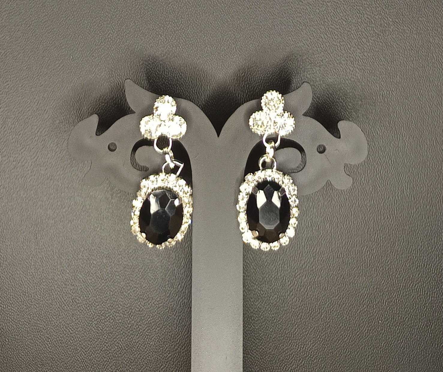 Rhodium-Plated Silver Toned American Diamond Necklace with earrings-Big stone pattern with pendent-black