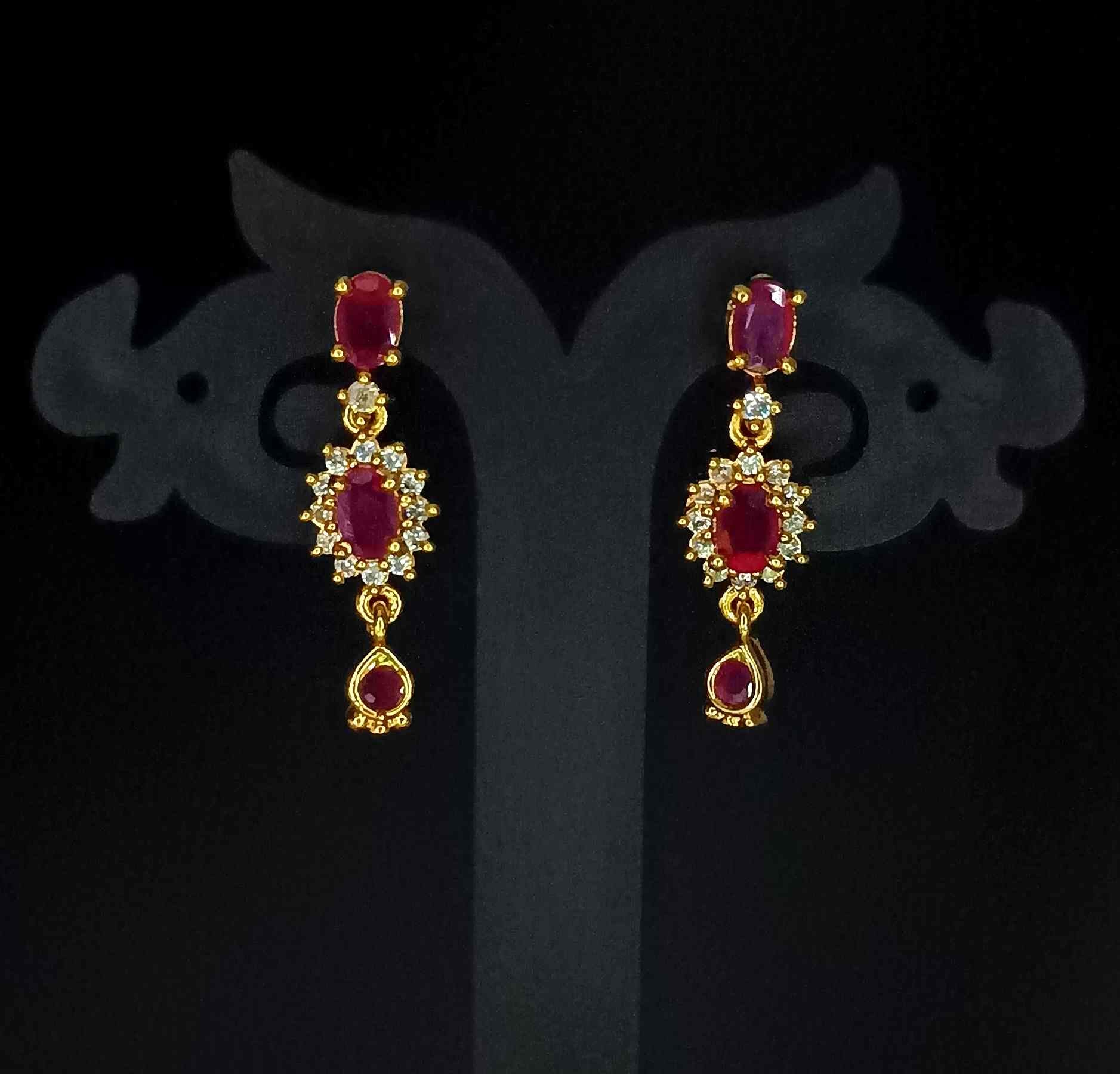 Stunning gold plated hanging Earring with Ruby White stones